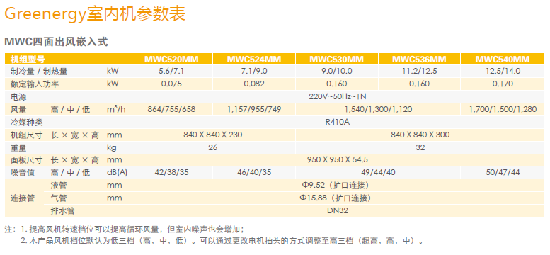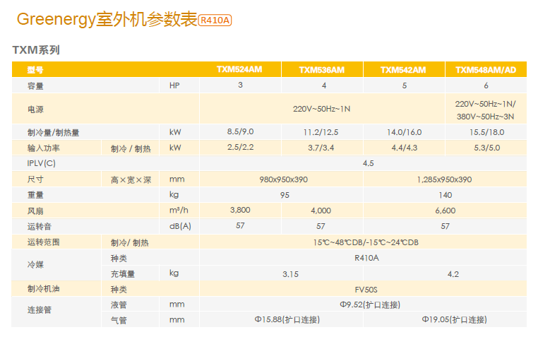 機(jī)組制冷環(huán)境溫度范圍:15~48℃,制熱運(yùn)行溫度范圍:-15~24℃。