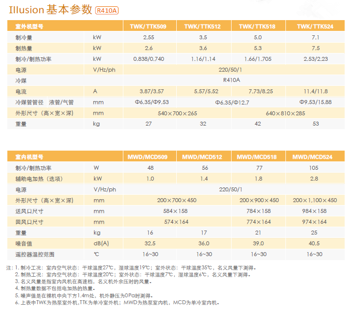 Illusion家用暗藏風(fēng)管式機組為一拖一類型空調(diào)。共有8種規(guī)格,其中單冷和熱泵各4種:制冷量2.55~7.1kW,制熱量2.6~7.5kW,全部可以滿足各種家庭和酒店及酒店式公寓的空調(diào)要求。